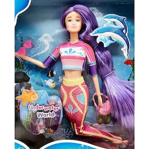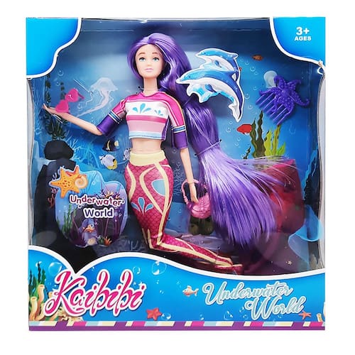 Boneca Kaibibi Sereia Mundo na Água Cabelo Roxo.