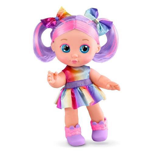 Contém: 1 Boneca, 1 Tiara, 5 enfeites para tiara e 1 par de sapatinhos.