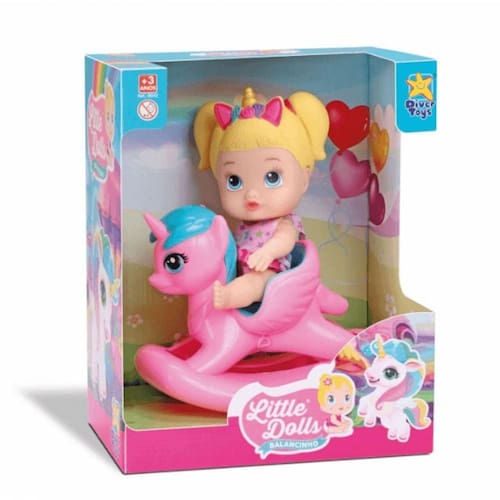 Boneca Little Dolls Balancinho Unicórnio - Divertoys A boneca da coleção little dolls balançinho unicórnio baby é um encanto! A bonequinha é muito fofa e graciosa, toda em vinil macio e perfumado. possuem características únicas e diferenciadas! a little dolls balancinho unicórnio chegou para fazer parte desse time de bonecas fofinhas! uma boneca com tiara de unicórnio e uma roupa super fashion e para completar a diversão um balancinho de unicórnio, afinal ela adora balançar, tem como não se apaixonar?! Código de barras: 7898639380432 Dimensões aprox. da embalagem em cm: 28x16x23 Peso liq. Aproximado do produto na embalagem: 0,643 Referência do Modelo: 8043 Certificado Inmetro: sim Conteúdo da Embalagem: 1 Boneca e 1 Unicónio Composição/material: Plástico Idade recomendada: +3 anos Garantia: 90 dias contra defeitos de fabricação pelo fabricante Imagens meramente ilustrativas. As cores e tonalidades podem variar. Gênero - Meninas Idade - 3 anos 4 anos 5 anos 6 anos Personagens - Little Dolls Unicórnio Tipo de Boneca - Bonecas Bebê Atributos Bonecas - Sem Cabelo Sem Mecanismo Ean: 7898639380432