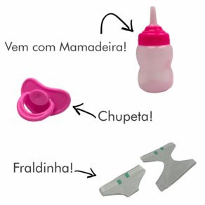 Para a brincadeira ficar ainda mais divertida acompanha junto a bonequinha: chupeta, mamadeira e fraldinha, afinal ela faz xixi e precisamos cuidar da bebezinha.Características:Marca: Divertoys BrinquedosMaterial: VinilModelo: Panda/BrancoContém: 1 Boneca, 1 Chupeta, 1 Mamdeira E 1 FraldinhaDimensões: 18 cm (A)Indicação: +3 AnosDimensões Da Embalagem: 21 cm (A) x 16 cm (C) x 10 cm (L) Marca: BRINQUEDO LITTLE DOLLS SONINHO DIVERTOYS PAND