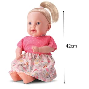 Boneca Lívia Bambola – Faz Xixi de Verdade com Acessórios A Boneca Lívia da marca Bambola foi criada para tornar a brincadeira ainda mais divertida e realista. Com corpo de pano macio e detalhes delicados, ela vem com mamadeira e fraldinha, proporcionando momentos de cuidado e imaginação para as crianças. Ao dar a mamadeira, a Lívia faz xixi de verdade, incentivando a interação e desenvolvendo habilidades de carinho e responsabilidade nos pequenos. Características: - Ref.: 686 - Marca: Bambola - Modelo: Lívia Faz Xixi - Material: Vinil, Tecidos e Polipropileno - Material Corpo: Pano Macio - Acompanha mamadeira e fraldinha - Faz xixi de verdade - Tamanho ideal para brincadeiras de cuidado - Código de barras (EAN): 7899871706868 - Altura Aproximada: 42 cm - Certificação: 7789-2023-BRI-1M - Recomendado para crianças a partir de 3 anos Conteúdo da Embalagem: - 1 Boneca - 1 Mamadeira - 1 Fralda Uma bonequinha encantadora que une realismo, fofura e qualidade, perfeita para presentear e estimular a imaginação infantil!