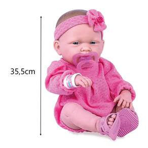 A Boneca Bebe Love Bebe By Acessórios Cotiplas é mais do que apenas uma boneca - ela é uma adorável amiga que se parece e se sente como um bebê de verdade. Com 35,5cm de altura, ela é do tamanho perfeito para abraçar e carregar, proporcionando uma experiência de brincadeira envolvente e realista.