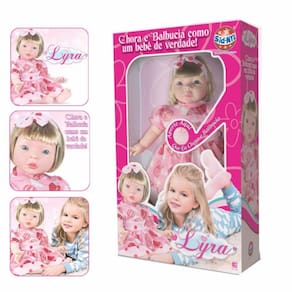 Boneca Bebê Lyra Com Mecanismo Chora e Balbucia - Sid-Nyl Boneca fofinha, gostosa de abraçar e tem cheirinho agradável e suave de Bebê. Chora e Balbucia como um Bebê de verdade. As meninas adoram brincar de mamãe e a Lyra é ideal para a brincadeira. Cabeça, pernas e braços em vinil e corpo de tecido TNT com enchimento de fibra siliconada atóxica. Características: - Marca: Sid -nyl - Modelo: Baby Lyra 1325 - Composição e Material: Cabeça, pernas e braços em vinil e Corpo em tecido TNT com enchimento em algodão atóxico - Funcionamento: Eletrônico Utiliza 3 bateria - Recomendada para meninas com idade a partir de 3 anos - Altura da Boneca: 50cm Aproximadamente Conteúdo: - 1 Boneca