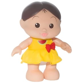 Detalhes Encantadores: A boneca Magali é fiel à sua contraparte dos quadrinhos, com detalhes que capturam sua essência, incluindo seu vestido amarelo e seu laço na cabeça.