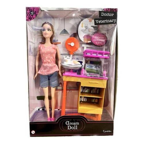 Esta boneca é o sonho de todas as crianças que adoram cuidar de animais e sonham em ser médicas veterinárias. Com a "Boneca Médica Veterinária Dream Doll", sua criança terá uma companheira de brincadeira incrível, cheia de detalhes encantadores. Este conjunto apresenta:
