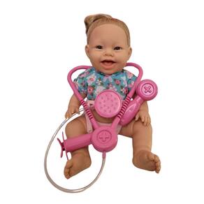 Itens inclusos: 1 boneca, 1 estetoscópio, 1 seringa e 1 otoscópio.