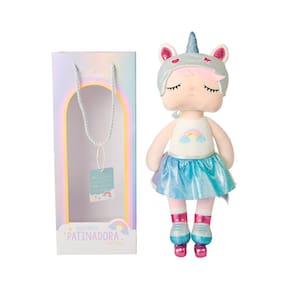 Características principais: • Capacete de unicórnio e rabo de cavalo colorido; • Saia de tutu colorida e patins brilhantes; • Toque aveludado e olhar sereno; • Perfeita para presentear e colecionar.