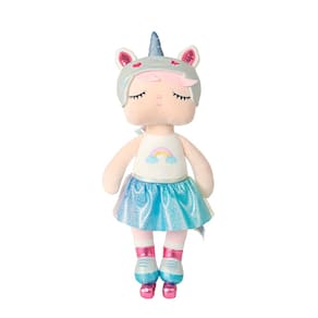 Descubra a magia da Boneca Metoo Angela - Unicórnio Patinadora! Com 33 cm de pura alegria, esta encantadora boneca promete conquistar o coração das crianças. Seu visual vibrante traz um capacete de unicórnio, um lindo rabo de cavalo nas cores do arco-íris e uma saia de tutu colorida, tudo pronto para aventuras sobre patins brilhantes.