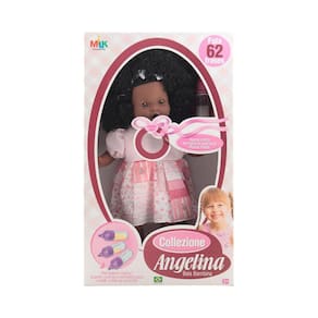 A Boneca Milk Collezione Angelina Negra Vai Encantar As Crianças! Basta Apertar a Barriguinha Para Ela Falar 62 Frases Diferentes Estimulando a Capacidade Auditiva e a Interação Entre Pais e Filhos! As Meninas Podem Soltar a Imaginação e Criar Histórias Incríveis com Essa Boneca. Acompanha Mamadeira Mágica.