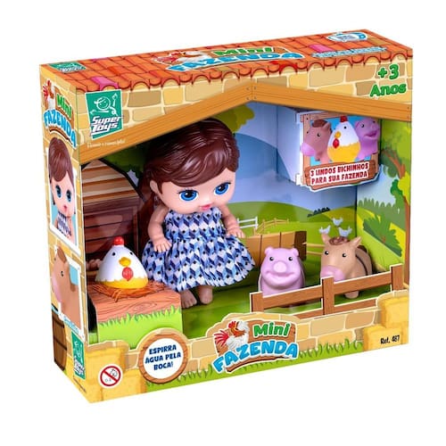 A DC Brinquedos tem a missão de garantir a satisfação total do seu cliente, tanto nos produtos quanto no atendimento. Assim estabelecendo uma relação de confiança Estamos sempre a disposição para tirar qualquer duvida. ---------------------------------------- Boneca Mini Fazenda Com 3 Animais Galinha, Porco e Cavalo - Super Toys Uma Fazendinha completa Monte sua fazenda e divirta-se cuidando dos animaizinhos Marca: Super Toys. Idade recomendada: A partir de 3 anos. Certificação do INMETRO: Sim Cor: Pode variar com a imagem apresentada. Imagens meramente ilustrativas. Conteúdo da Embalagem: 1 Boneca, 3 Animais Material: Vinil Dimensões Aprox. Da boneca - AxLxC: 17 x 8 x 7 cm. Dimensões Aprox. Dos bichinhos - AxLxC: 6 x 4 x 8 cm. Dimensões Aprox. Da embalagem - AxLxC: 28 x 30 x 9 cm. do Fornecedor: 3 meses. Referência do Modelo: 487. Código de Barras: 7898395334878. ATENÇÃO O vestuário, cabelo e acessórios podem variar em cores e modelos. ---------------------------------------- Aguardamos seu pedido Obrigado pela Preferencia Ean: 7898395334878