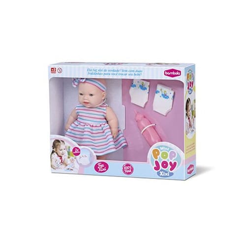 Itens Inclusos: 1 Boneca Mini Pop Joy Xixi, 2 Fraldas, 1 Mamadeira