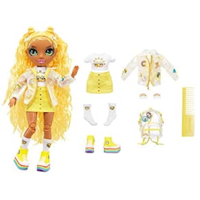 PRODUTO INTERNACIONAL. Rainbow High é a escolha perfeita para desenvolver a criatividade dos pequenos! Com os playsets inspirados nos alunos da Jr High, as crianças poderão voltar no tempo e conhecer seus personagens favoritos antes de se tornarem amigos. Este kit inclui uma boneca com novo esculpe facial mais jovem, roupa completa, acessórios para a escola e uma mochila de vinil macia.
