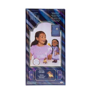 A Boneca Asha tem cerca de 35 cm de altura e vem com duas pequenas figuras. Ela te transporta para uma experiência musical mágica! Sua bela vestimenta e cabelos longos e brilhantes deixam a brincadeira mais encantada. Ela fala 20 frases e inclui uma estrela dos desejos que brilha enquanto as crianças cantam com a Asha.