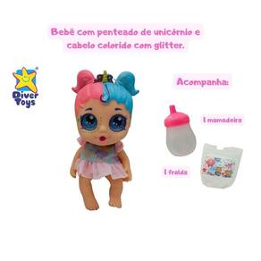 Boneca My Little Glitter Faz Xixi Mamadeira e Fraldinha - Divertoys
