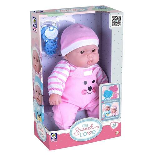 Boneca My Sweet Love Macacão Rosa - CotiplásEncante-se com a Boneca My Sweet Love Macacão Rosa da Cotiplás, a escolha ideal para momentos de ternura e diversão. Esta boneca encantadora vem vestida com um delicado macacão rosa e inclui uma chupeta com prendedor, proporcionando uma brincadeira ainda mais realista. Com corpo macio e características detalhadas, a Boneca My Sweet Love é perfeita para crianças que adoram brincar de cuidar de seus bebês. Estimula a imaginação, promove o desenvolvimento emocional e garante horas de entretenimento. Uma ótima opção para presentear e encantar os pequenos. Idade recomendada: A partir de 3 anos. Selo Inmetro: CE-BRI/IQB 0228 IQB-OCP 006.Diferenciais:com um adorável macacão cor-de-rosa e uma touquinha combinando, esta boneca é uma representação encantadora de um bebê gracioso e encantador.Detalhes meticulosamente elaborados, desde os olhos brilhantes e expressivos até os traços delicados do rostinho, proporcionam uma experiência sensorial e visual incrivelmente autêntica.Vem acompanhada por uma chupeta que se encaixa perfeitamente em sua boca, oferecendo uma sensação autêntica de cuidado e conforto.Mais sobre o Produto:A Boneca My Sweet Love é a companhia perfeita para diversão e desenvolvimento das crianças. Ela estimula a criatividade, imaginação e habilidades sociais durante o brincar, promovendo momentos mágicos e inesquecíveis.Dicas de Uso:Essa boneca encantadora é ideal para presentear crianças que adoram brincar de faz de conta. Ela pode se tornar a melhor amiga das meninas, acompanhando-as em aventuras e estimulando o aprendizado através do faz de conta.Ficha Técnica:Marca: Cotiplás;Nome do produto: Boneca My Sweet Love Macacão Rosa;Idade recomendada: A partir de 3 anos;Selo Inmetro: CE-BRI/IQB 0228 IQB-OCP 006;Contém: 1 boneca e 1 chupeta com prendedor.