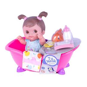 Boneca na Banheira com Acessórios Tu Nenê - Cotiplás 2604 Vôce está pronta para mais um dia de Diversão, a Boneca Tu Nenê é macia de vinil podendo molher e dar banho , vem com uma banheira e acessórios para que possa divertir . Idade = Acima de 3 anosBaterias = Não, produto não necessita de baterias.Altura da Boneca = 23,5 cm Banheira= 13cm de Altura e 32cm de comprimentoMaterial = Vinil Código de Barras= 7896964626041Certificação= CE-BRI/IQB 0228 IQB-OCP 006Corpo = Vinil Possui acessórios= 1 Mamadeira,1 saboneteira com sabonete1 pente modelo Patinho , 1 baleia de vinil Cores dos Acessoriose roupas podem variar nao sendo possivel escolher . Cor dos olhos da boneca podem variar castanho , azul e verde .Homologação Inmetro: IP-BRI-8313/2018-12