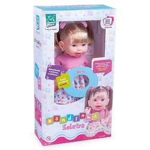 Ao apertar sua barriguinha a Nandinha fala frases ensinando a criança a soletrar palavras durante a brincadeira.