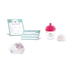- Acompanha: mamadeira mágica, fraldinha, mantinha, chupeta com luzes, carteirinha de vacinação e certidão de Nascimento