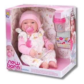 Encante-se com a Boneca New Born Soninho, perfeita para quem ama cuidar de bebês com todo carinho! Com detalhes realistas e roupinha de dormir super fofa, ela é ideal para brincar ou colecionar.Características:- Boneca estilo recém-nascido (newborn)- Corpo macio e articulado- Vem com roupinha temática de domir: Pijaminha, touca, mamadeira e chupeta- Tamanho aproximado: 30cm- Rosto detalhado com expressão delicada- Acompanha mamadeira