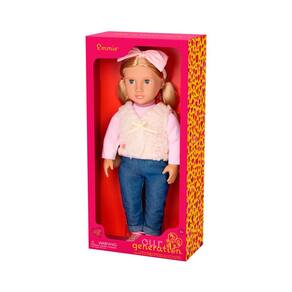 A boneca Emmie da Our Generation, com 46 cm de altura, é perfeita para quem adora moda e aventuras cheias de estilo. Seus olhos azul-claro que abrem e fecham, junto ao longo cabelo loiro claro, oferecem muitas possibilidades de penteados criativos. Com corpo macio e articulado, ela permite poses realistas e troca fácil de roupas, deixando a brincadeira mais divertida e dinâmica.