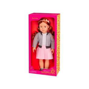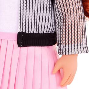 Ela chega vestida com uma jaqueta moderna, blusa casual, saia plissada rosa vibrante, tiara com laço, calcinha e sapatos, ideal para brincadeiras de vestir e contar histórias. Suas articulações no pescoço, braços e pernas facilitam a troca de roupas e ampliam a diversão, permitindo que as crianças explorem a criatividade com as roupas e acessórios Our Generation.