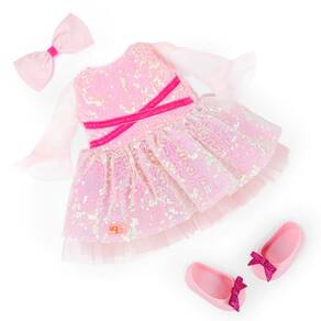 A Boneca Our Generation Katia chegou para brilhar e conquistar corações! Com 46 centímetros de altura, Katia exibe um visual encantador: ela usa um lindo vestido rosa repleto de lantejoulas cintilantes que refletem a luz com suavidade, criando um efeito mágico e sofisticado. A faixa de cetim rosa-escuro na cintura e as mangas de tule transparente completam o look com muito charme. Seus cabelos longos e castanhos, com ondas delicadas, são perfeitos para pentear e criar diversos estilos. Para finalizar, Katia usa um laço no cabelo e sapatilhas com detalhes em glitter, que deixam o visual ainda mais elegante.