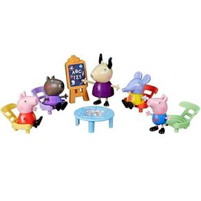 Crianças e fãs da Peppa Pig podem brincar e aprender com a Peppa! Este brinquedo Peppa Pig vem com 5 figuras e 6 acessórios para as crianças se imaginarem na escola com a Peppa e seus amigos. Este kit inclui 5 figuras de 7,5 cm dos personagens da série animada como Elefanta Emília, Danny Cão, George Pig, Madame Gazela e Peppa Pig. Vem com 4 cadeiras para as figuras sentar, 1 mesa giratória e 1 cavalete para pequenas lições. É um excelente presente para meninos e meninas a partir dos 3 anos fãs da Peppa.