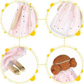 Presente mais favorito Toda princesa ballerina boneca tem um vestido bonito e um nome exclusivo. É a escolha perfeita para presentes de aniversário, presentes de Natal e Halloween. Boneca Princesa Bailarina são o presente mais desejado para cada garota Requintada Forma A mais requintada Princesa Bailarina Boneca tem cabelo de ferida de mão, gola elástica, saia requintada e sapatos de balé dourados, Mas vale a pena notar que, por favor, não deixe seu filho desmontar o cabelo da boneca e manter a boneca na forma mais bonita Removível e Lavável Cada Princesa Bailarina Boneca tem seu próprio nome e um cartão de identidade. A saia da Boneca Princesa Bailarina pode ser retirada, e se você reunir seus bons amigos em casa, você pode trocar de roupa um para o outro, trazendo mais diversão para jogar Segurança material O interior da Boneca Princesa Ballerina está cheio de algodão PP de alta qualidade, e todo o corpo é costurado com tecidos de seda de alta qualidade. Macios, seguros e podem fazer as crianças brincarem alegremente Não máquina Lavável Tecidos high-end devem ser tratados suavemente, lavados à mão em água morna, e pendurados para secar