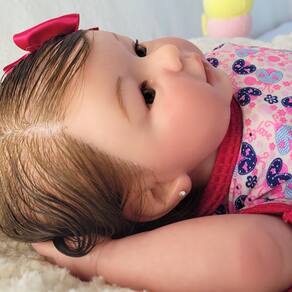 NOSSAS BEBÊS SÃO CONFECCIONADAS CUIDADOSAMENTE CONFECCIONADAS EM VINIL DE SILICONADO BEM MACIO, PERMITINDO EXPERIÊNCIAS DE BANHO INCRIVELMENTE AUTÊNTICAS. OS OLHOS CASTANHOS PROFUNDOS E O CABELO IMPLANTADO FIO A FIO CONFEREM A ELA UMA PRESENÇA REALISTA E APAIXONANTE.