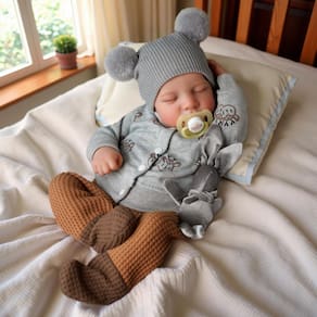 bonecas reborn - Cute Sleeping Boy: Shhhh....Você não vai querer acordar este doce bebê adormecido reborn menino! Ele parece tão real e realista, e você se verá na ponta dos pés prestes a preservar cada segundo de seu sono de beleza - Detalhes delicados realistas: esta boneca realista é esculpida com expressões emocionantes, rugas realistas, veias delicadas, sobrancelhas/cabelos pintados à mão, membros longos, cílios aplicados à mão e pequenos dedos e dedos enrugados, tudo isso o traz à vida e fazem você não conseguir ajudar a beijar seu rosto - Bonecas de bebê articuladas tão reais: as bonecas recém-nascidas de 50 cm anatomicamente corretas e realistas são projetadas com um corpo de vinil completo, permitindo muitas poses fofas. Cada vez que você o segura em seus braços, você o encontrará tão real e precioso, não apenas o bebê sentindo a pele, mas também as características realistas pintadas à mão para recém-nascidos - Melhor escolha para seus filhos: esta boneca Reborn está em conformidade com os requisitos de segurança para crianças a partir de 3 anos. Totalmente seguro para o seu filho. Uma surpresa ideal para o aniversário do seu filho, Natal e outros feriados - Leve-o para casa agora: este conjunto de bonecas vem até você com 1 x boneca, 1 x mamadeira de amamentação, 1 x chupeta magnética, 1 x cartão de nascimento, 1 x conjunto de roupas e 1 x caixa