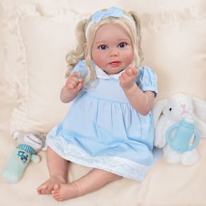 Bonecas BABESIDE Lifelike Reborn — Bonecas realistas de 20", bonecas de corpo macio, bonecas da vida real, menina com caixa de presente para crianças — Seu doce bebê: um grande pacote de alegria chegou e você ficará surpreso! Nossa garotinha mais fofa aquecerá seu coração com suas bochechas rechonchudas e um sorriso de bebê de boca aberta. Com aqueles cabelos lindos, braços dobrados e charme geral, essa garotinha certamente conquistará muitos corações. - Saudável e alegre: seu corpo macio e posável tem 20 polegadas da cabeça aos pés, o que é semelhante a um bebê de 1 a 3 meses. Os membros móveis permitiam que você a colocasse sentada e deitada com facilidade. Seu peso é de 2,8 libras. As crianças podem levá-la a qualquer lugar para brincar. Um leve rubor no rosto fofo faz com que esta boneca renascida pareça realista. - Garota requintada: sua cabeça e membros são feitos de vinil macio, o corpo é feito de algodão. Ela veste roupas do tamanho de um bebê recém-nascido de 1 a 6 meses. A sensação de um bebê de verdade quando você a toca e a abraça. Traços pintados à mão, incluindo suas pequenas unhas dos pés, sobrancelhas, cabelos enraizados à mão e olhos cintilantes embutidos, adicionam mais charme a esta linda boneca. - Friendly Playmate: esta boneca adota material não tóxico, está em conformidade com os requisitos de segurança da ASTM F963 e EN71 para crianças a partir de 3 anos. A boneca recém-nascida realista será um presente atencioso para seus filhos. - Leve-a para casa agora: esta boneca realista para recém-nascidos vem em uma bela caixa de presente e um conjunto completo de acessórios. A caixa de presente inclui: 1 boneca com roupas, 1 mamadeira, chupeta magnética, 3 chocalhos, 1 fralda, 1 cartão de nascimento.