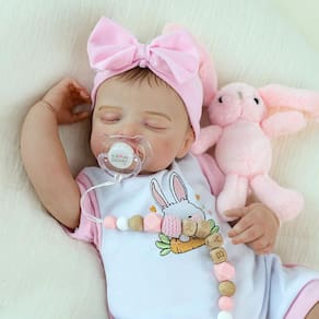 - Roupa adorável e acessórios atenciosos. A boneca reborn Rosalie vem vestida com um macacão rosa macio com estampas de coelho, combinado com uma charmosa faixa de cabeça de laço rosa, mostrando sua doçura e inocência. O conjunto inclui uma mini mamadeira, uma chupeta magnética para ajudá-la a "adormecer", uma certidão de nascimento personalizada e uma caixa de presente elegante. Essas adições atenciosas realçam seu charme e garantem que cada experiência de unboxing seja preenchida com calor e prazer.
