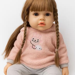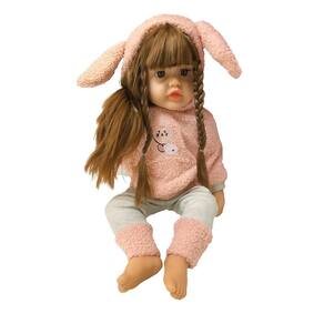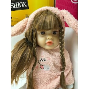 ???? Características: • Boneca realista com expressão serena e olhos brilhantes • Cabelos castanhos claros trançados com acabamento delicado • Roupa macia em tons pastéis, com suéter rosa e calça cinza • Touca com orelhinhas de coelho super fofa • Corpo em material resistente e agradável ao toque • Tamanho aproximado: 40cm Marca: Não Informado