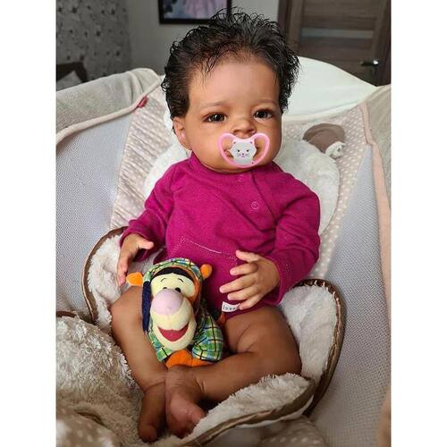 “Tipo de item: 20 polegadas, comprimento real do bebê, cabelo enraizado à mão, pele castanha escura com tecido macio, corpo realista, bebê renascido, recém-nascido realista. Coletivamente, o bebê se sente real; material: algodão, poliéster, couro sintético: sexo: mulher, senhora; estilo: moda, moda, casual, sexy; estação: primavera, verão, outono, inverno”