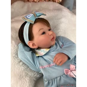 Nossos bebês são confeccionados com o mais alto padrão de qualidade em vinil siliconado. Os olhos azuis brilhantes garantem uma aparência encantadora e realista.