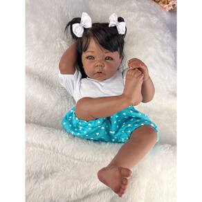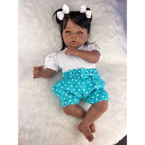 Nossos bebês são confeccionados com o mais alto padrão de qualidade em vinil siliconado. Os olhos castanhos brilhantes garantem uma aparência encantadora e realista.