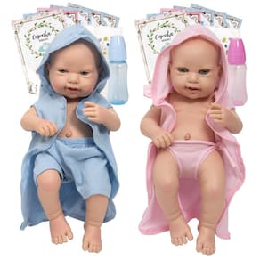Bonecos Bebê Reborn Gêmeos são o sonho das meninas Produzidos 100% em vinil siliconado, esses bonecos podem sentar, deitar e fazer tudo que a sua imaginação deixar. Com seus lindos olhos e detalhes realistas eles são encantadores e apaixonantes. Sua criança merece a melhor qualidade de bebê reborn