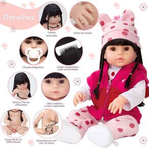 Características Principais: Dispositivo de Choro, Membros Articulados, Corpo de Silicone, Detalhes Realistas.