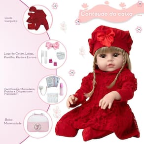 A Boneca Bebê Reborn é o sonho das crianças Produzida 100% em vinil siliconado, essa boneca pode sentar, deitar e fazer tudo que a sua imaginação deixar. Com seus olhos castanhos e detalhes realistas ela é encantadora e apaixonante. Sua criança merece a melhor qualidade de bebê reborn