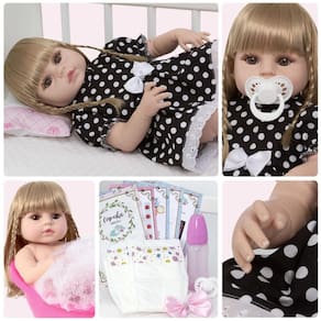 A Boneca Bebê Reborn é o sonho das meninas Produzida 100% em vinil siliconado, essa boneca pode sentar, deitar e fazer tudo que a sua imaginação deixar. Com seus olhos castanhos e detalhes realistas ela é encantadora e apaixonante. Sua criança merece a melhor qualidade de bebê reborn