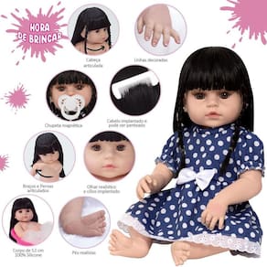 A nossa empresa tem a missão de garantir a total satisfação de seus clientes, onde a qualidade e o atendimento excepcional são nossa prioridade Estamos muito felizes em apresentar a Boneca Bebê Reborn para você, um item cuidadosamente selecionado para atender às suas necessidades. Compre agora e experimente a diferença em comprar com a nossa loja.A Boneca Bebê Reborn é o sonho das meninas Produzida 100% em vinil siliconado, essa boneca pode sentar, deitar e fazer tudo que a sua imaginação deixar. Com seus olhos castanhos e detalhes realistas ela é encantadora e apaixonante. Sua criança merece a melhor qualidade de bebê reborn Marca: Cegonha Reborn DollsModelo: Boneca Bebê Reborn Cor: BegeMaterial: Vinil Siliconado AtóxicoCaracterísticas Principais: Membros Articulados, Corpo de Silicone, Detalhes Realistas.Medidas Aprox.: Altura da Boneca: 46cm Peso Aprox. Da Boneca: 0,745 Kg Certificado INMETRO Recomendado para crianças maiores de 03 anosConteúdo:1 Bebê Reborn Cabeça, Membros e Corpo de Vinil 1 Vestido1 Par de Cílios1 Par de Brinco1 Chupeta 1 Mamadeira Simples5 Certificados3 Fraldas1 Laço Cetim2 Presilhinha1 Par de Luvas1 Bolsa Maternidade1 Prendedor de ChupetaKit Pente e Escova SimplesGarantia30 dias de garantia oferecida pelo fabricante.Dúvidas Frequentes:1. Ela acompanha ItensR. Sim, todos os itens da descrição.2. Ela emite algum somR. Não, ela não emite nenhum som.3. Pode dar banho na bonecaR. Sim, pois o material do corpo é de Silicone.4. Pode escolher a cor dos olhos da bonecaR. Não, os olhos já vêm de fábrica.Tags: Realista, Menina, Infantil, Silicone, Princesa, Linda, Morena, Loira, Fofa, Banho, Enxoval, Completo, Grande, Baby Alive.Homologação Inmetro: ABCP-BRI-0289-2022