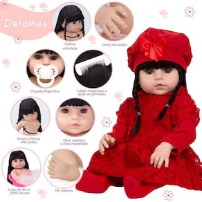 A Boneca Bebê Reborn é o sonho das crianças Produzida 100% em vinil siliconado, essa boneca pode sentar, deitar e fazer tudo que a sua imaginação deixar. Com seus olhos castanhos e detalhes realistas ela é encantadora e apaixonante. Sua criança merece a melhor qualidade de bebê reborn