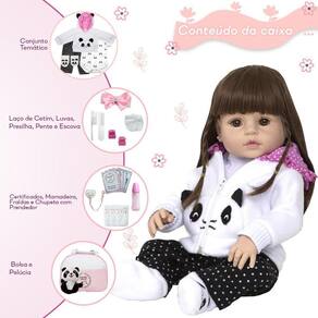 A Boneca Bebê Reborn Pandinha é o sonho das meninas Produzida 100% em vinil siliconado, essa boneca pode sentar, deitar e fazer tudo que a sua imaginação deixar. Com seus olhos castanhos e detalhes realistas ela é encantadora e apaixonante. Sua criança merece a melhor qualidade de bebê reborn