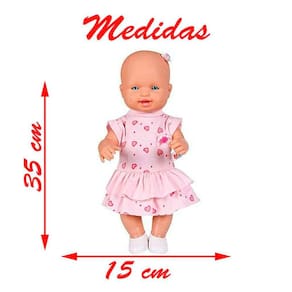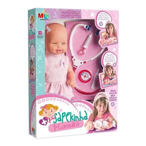 Boneca feita em vinil e plástico, com articulações na cabeça, braços e pernas, os olhos são fixos. Sua filha vai adorar brincar com esta linda boneca! Possui acessórios para a primeira consulta médica. Altura: 35cm Largura: 15cm Idade Recomendada: +Acima de 4 anos