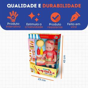 Boneca Sapekinha Fast Food Hamburguer Meninas Boneca Sapekinha Hambúrguer Fast Food : A Aventura Culinária Começa Aqui Quer transformar a brincadeira em uma deliciosa experiência A Boneca Sapekinha Hambúrguer Fast Food é o brinquedo ideal para quem adora criar e servir lanches incríveis Com sua temática divertida de fast food, a Boneca Sapekinha vem acompanhada de acessórios encantadores, perfeitos para montar o melhor hambúrguer da cidade Com seu visual moderno e colorido, ela traz todo o charme das lanchonetes para as brincadeiras do dia a dia. Imagine as histórias que sua criança pode inventar com essa boneca Seja criando um restaurante de sucesso ou servindo os melhores hambúrgueres aos amigos, a Sapekinha Hambúrguer Fast Food promete horas de diversão e imaginação sem fim. Não deixe essa oportunidade passar Adquira agora a Boneca Sapekinha Hambúrguer Fast Food e proporcione à sua criança momentos de pura alegria e criatividade. Com essa boneca, cada lanche é uma nova aventura Especificações do Produto Marca: Milk Brinquedos Modelo: Fast Food Hamburguer Dimensões AxLxC : 42x10x23 Peso: 280 Itens Inclusos: 1 Boneca, 1 Hamburguer, 2 Bisnagas UTILIZAÍ DISTRIBUIDORA A Utilizai foi criada para facilitar o dia a dia de seus clientes. Estamos há 27 anos no mercado e acreditamos que um mundo melhor começa pela nossa casa e queremos fazer parte de cada bom momento do seu dia a dia. Prezando pelo atendimento personalizado, humanizado, buscando excelência na prestação dos serviços com qualidade, entrega rápida, e preços competitivos e produtos com . Homologação Inmetro: CE-BRI/ICEPEX-N 01382-80-8 Marca: Não Informado