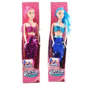 Boneca Sereia com Lantejoula Muda de COR Sort Boneca Sereia Encantada.\nIdeal para a diversão das meninas.\nEstimula a criatividade e imaginação.\nRoupa de lantejoula que muda de cor.\nEspecificações:\nMarca : ARK\nTipo de material : Plástco, tecido e Nylon\nCores ou Estampa :\nDimensões do Produto : 37 X 6 X 2,5 CM\nDimensões da Embalagem : 32,5 X 8 X 5 CM\nPeso Bruto (Gramas) : 0.09