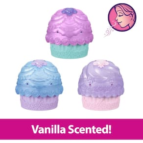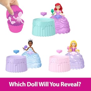 - Abra o cupcake para encontrar uma boneca pequena da Princesa Disney (9 cm) dentro! As bonecas podem ser Tiana, Ariel ou Rapunzel.