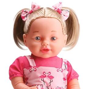 A Boneca Talk Baby da Bee Toys é perfeita para encantar as crianças com sua aparência delicada e realista. Com cabelos loiros macios e penteáveis, ela vem vestida com um lindo vestido rosa cheio de charme, que completa seu visual adorável.
