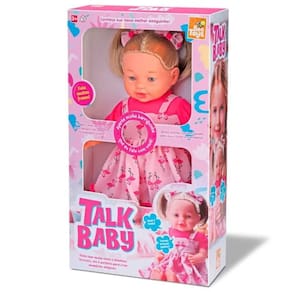 Além do tamanho grande de 50 cm, que a torna ainda mais especial, a boneca Talk Baby também fala frases que estimulam a imaginação e tornam a brincadeira muito mais interativa e divertida.