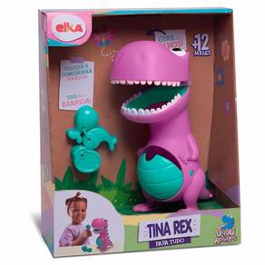 Boneca Tina Papa Tudo Dinossauro Rex Interativa Didática Que Engole E Solta ComidinhasA Tina Rex Papa Tudo da Elka Brinquedos transforma a hora da refeição em diversão. Este dinossauro abre a boca para “engolir” franguinho, peixinho e carninha de brinquedo, e, em seguida, abre a barriguinha para recolher tudo e recomeçar a brincadeira.Ao girar os olhinhos e as escamas, a criança desenvolve a coordenação motora e experimenta diferentes texturas. Essas atividades estimulam a percepção tátil e visual enquanto ensinam sobre causa e efeito de forma lúdica.Ideal para o momento de introdução alimentar e para incentivar bons hábitos de higiene bucal, a Tina Rex ajuda o bebê a se familiarizar com alimentos e cuidar dos dentes, unindo aprendizado, estímulo sensorial e pura diversão.ESPECIFICAÇÕES:- Recomendado a partir de 1 ano- Dimensões aproximadas da embalagem (CLA): 26 x 12 x 32 cm- Dimensões aproximadas do dinossauro (CLA): 14 x 9 x 24 cm- Contém: 01 Dinossauro, 03 Petiscos- Abre e fecha a boca e a barriga- Olhos e escamas giratórias- Material: Plástico- Marca: Elka Brinquedos- Referência: 1299